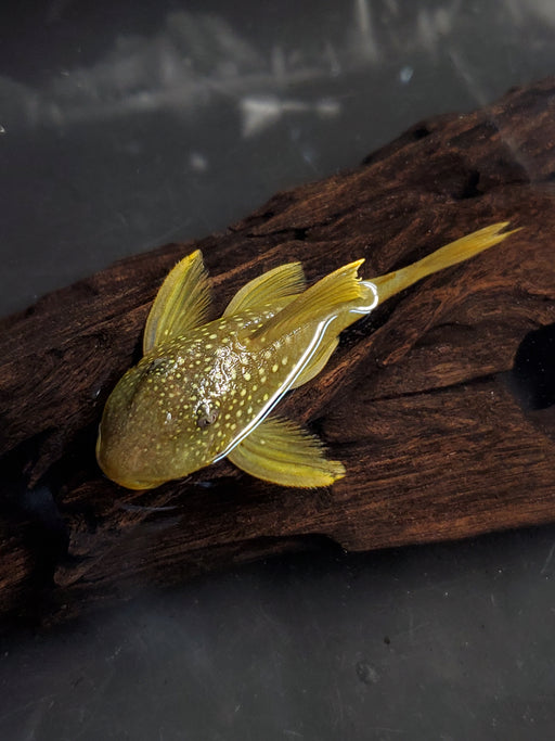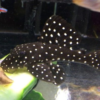 The Golden Vampire Pleco is a very beautiful golden colored pleco with black spots. They can grow to 9 inches.
