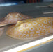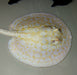 The Pearl Stingray originates from the Tapajos River in Brazil. It is characterized by a golden brown base with black rings. In this albino morph, the colors are reversed so we get white rings on a golden yellow base, not be confused with the red base albino type.