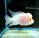 This variant displays a golden yellow base color and red on the front portion of the body with light blue pearls and markings. The intense red will develop with age and stable water quality.