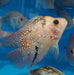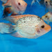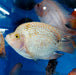 The Red Texas Cichlid is a hybrid fish that was developed by the cross breeding of Flowerhorn Cichlid (Cichlasoma sp.) and Texas Cichlid (Herichthys cyanoguttatus). The development of color goes through different stages of development. The start with a grey juvenile color and as they grow the grey fades and the become a golden red base color with blue pearls. This transition takes time and varies from fish to fish.