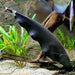 The Black Ghost Knifefish is a member of the Apteronotidae family and the speckled knifefish group. It is considered a true bony fish. When properly cared for, the Black Ghost Knifefish can reach well over one foot in length. It possesses a weak electrical organ at the caudal peduncles which is used to locate food.