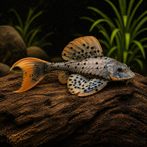 This is probably the most popular pleco in the aquarium trade. Classic black body with bright yellow spots and yellow trim on the top fin and tail....